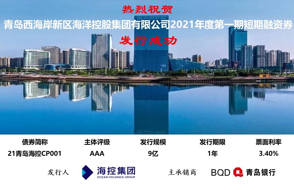 3月2日,??丶瘓F(tuán)成功發(fā)行2021年第一期短期融資券,也是今年新區(qū)首支短期融資券,發(fā)行規(guī)模9億元,發(fā)行期限365日,發(fā)行利率3.40%,認(rèn)購(gòu)倍數(shù)為2.15倍。