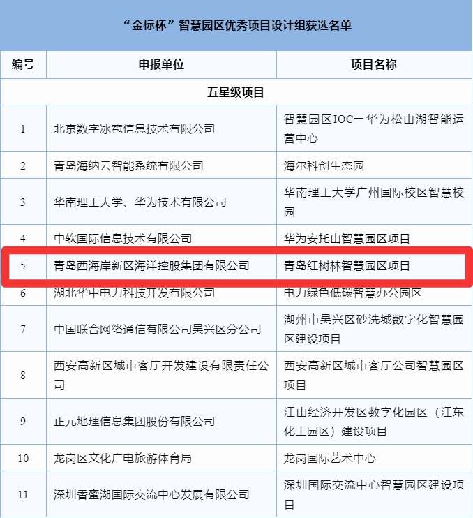 旅業(yè)動(dòng)態(tài) | 青島紅樹(shù)林智慧園區(qū)項(xiàng)目入選“金標(biāo)杯”智慧園區(qū)優(yōu)秀項(xiàng)目